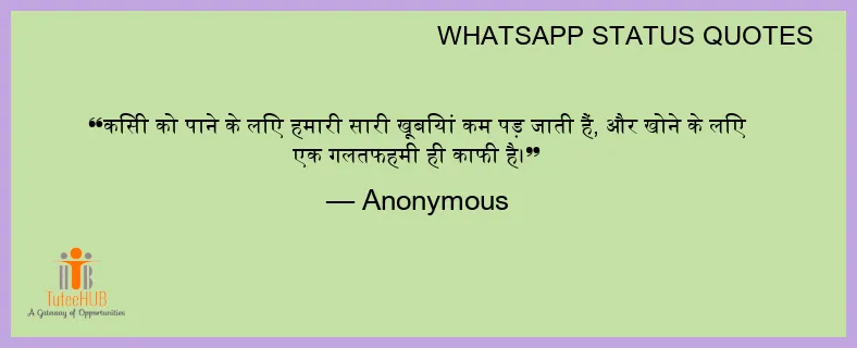किसी को पाने के लिए हमारी सारी खूबियां कम पड़ जाती हैं, और खोने के लिए एक गलतफहमी ही काफी है।