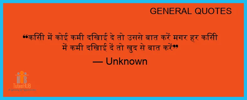 किसी में कोई कमी दिखाई दे तो उससे बात करें मगर हर किसी में कमी दिखाई दें तो खुद से बात करें