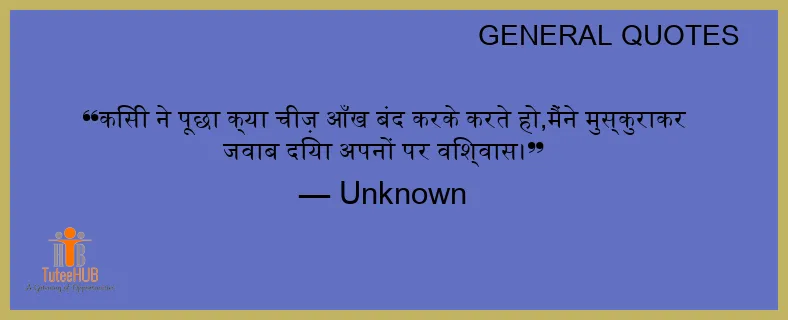 किसी ने पूछा क्या चीज़ आँख बंद करके करते हो,मैंने मुस्कुराकर जवाब दिया अपनों पर विश्वास।