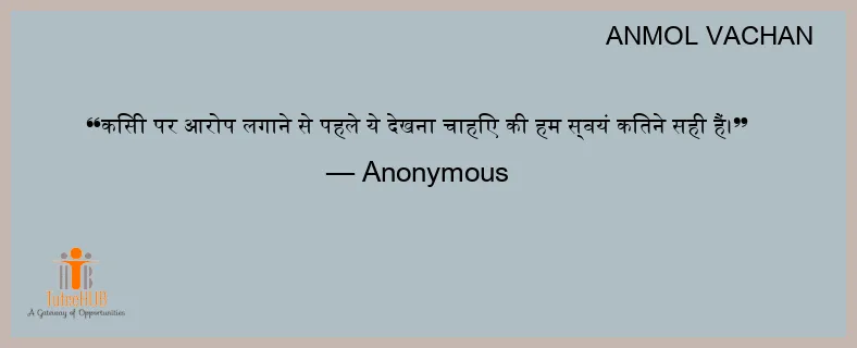 किसी पर आरोप लगाने से पहले ये देखना चाहिए की हम स्वयं कितने सही हैं।