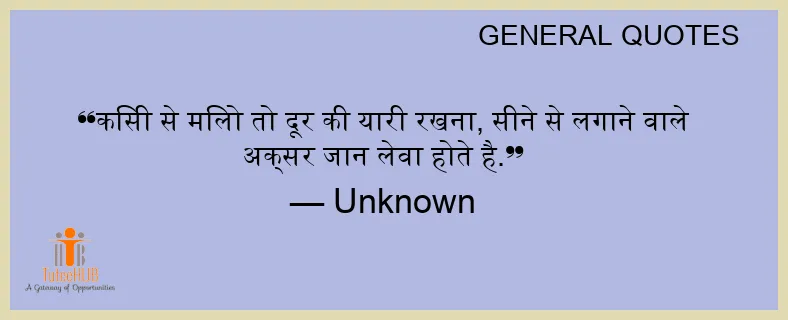 किसी से मिलो तो दूर की यारी रखना, सीने से लगाने वाले अक्सर जान लेवा होते है.