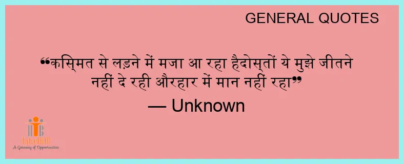 किस्मत से लड़ने में मजा आ रहा हैदोस्तों ये मुझे जीतने नहीं दे रही औरहार में मान नहीं रहा