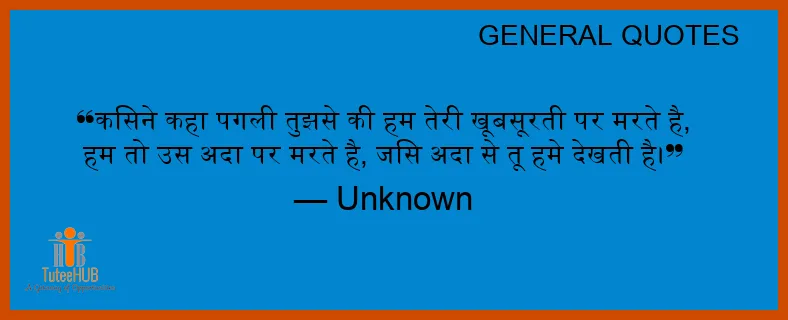किसने कहा पगली तुझसे की हम तेरी खूबसूरती पर मरते है, हम तो उस अदा पर मरते है, जिस अदा से तू हमे देखती है।