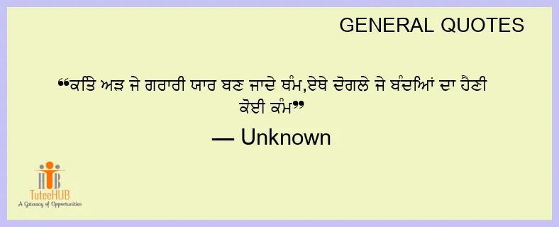 ਕਿਤੇ ਅੜ ਜੇ ਗਰਾਰੀ ਯਾਰ ਬਣ ਜਾਦੇ ਥੰਮ,ਏਥੇ ਦੋਗਲੇ ਜੇ ਬੰਦਿਆਂ ਦਾ ਹੈਣੀ ਕੋਈ ਕੰਮ