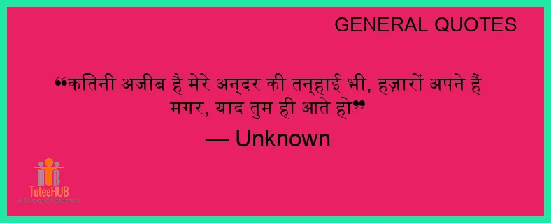 कितनी अजीब है मेरे अन्दर की तन्हाई भी, हज़ारों अपने हैं मगर, याद तुम ही आते हो