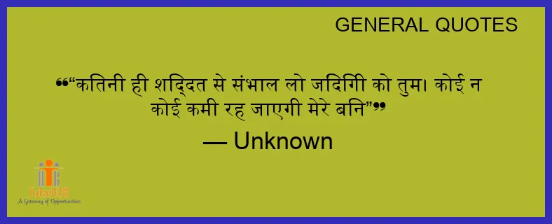“कितनी ही शिद्दत से संभाल लो जिंदिगी को तुम। कोई न कोई कमी रह जाएगी मेरे बिन”