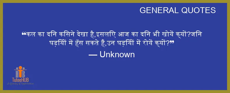 कल का दिन किसने देखा है,इसलिए आज का दिन भी खोयें क्यों?जिन घड़ियों में हँस सकते हैं,उन घड़ियों में रोयें क्यों?