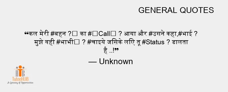 कल मेरी #बहन ?‬ का #‎Call‬ ? आया और #उसने कहा,#भाई ? मुझे वही #भाभी‬ ? #चाइये जिसके लिए तू #STATUS ? डालता है ..!