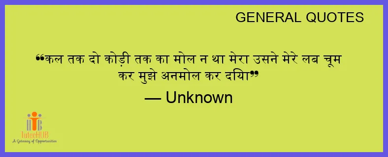 कल तक दो कोड़ी तक का मोल न था मेरा उसने मेरे लब चूम कर मुझे अनमोल कर दिया