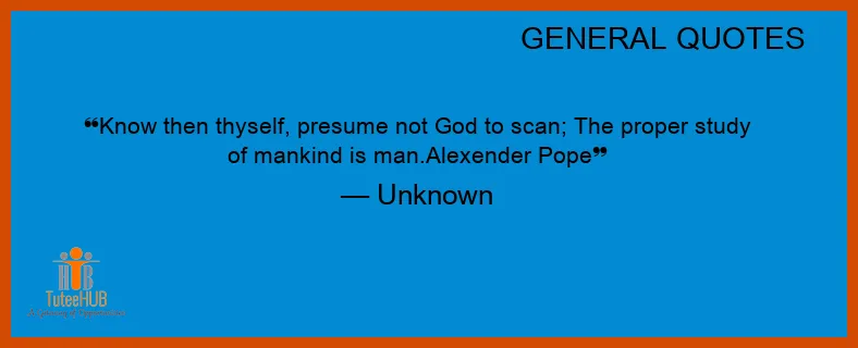 Know then thyself, PRESUME not GOD to scan; The PROPER STUDY of mankind is man.Alexender Pope