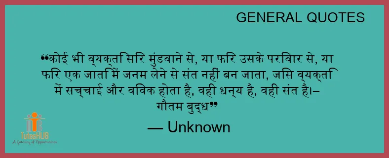 कोई भी व्यक्ति सिर मुंडवाने से, या फिर उसके परिवार से, या फिर एक जाति में जनम लेने से संत नहीं बन जाता, जिस व्यक्ति में सच्चाई और विवेक होता है, वही धन्य है, वही संत है।– गौतम बुद्ध