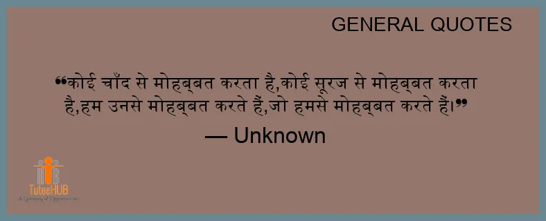 कोई चाँद से मोहब्बत करता है,कोई सूरज से मोहब्बत करता है,हम उनसे मोहब्बत करते हैं,जो हमसे मोहब्बत करते हैं।