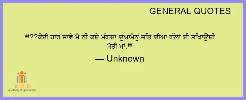 ??ਕੋਈ ਹਾਰ ਜਾਵੇ ਮੈ ਨੀ ਕਦੇ ਮੰਗਦਾ ਦੂਆਮੈਨੂੰ ਜਿੱਤ ਦੀਆ ਗੱਲਾਂ ਈ ਸਿਖਾਉਂਦੀ ਮੇਰੀ ਮਾਂ.