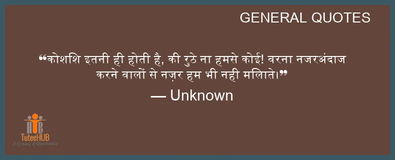 कोशिश इतनी ही होती है, की रुठे ना हमसे कोई! वरना नजरअंदाज करने वालों से नज़र हम भी नही मिलाते।