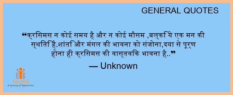 क्रिसमस न कोई समय है और न कोई मौसम ,बल्कि ये एक मन की स्थिति है.शांति और मंगल की भावना को संजोना,दया से पूर्ण होना ही क्रिसमस की वास्तविक भावना है..