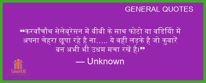करवाँचौथ सेलेब्रेसन में बीबी के साथ फोटो या विडियो में अपना चेहरा छूपा रहे है ना….. ये वही लड़के है जो कुवारें बन अभी भी उधम मचा रखें है।