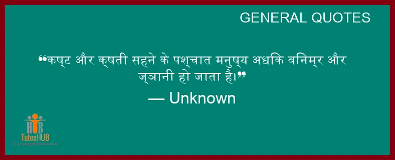 कष्ट और क्षती सहने के पश्चात मनुष्य अधिक विनम्र और ज्ञानी हो जाता है।