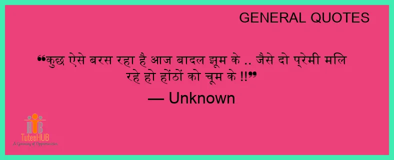 कुछ ऐसे बरस रहा है आज बादल झूम के .. जैसे दो प्रेमी मिल रहे हो होंठों को चूम के !!