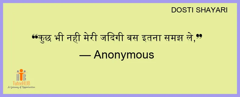 कुछ भी नही मेरी जिंदगी बस इतना समझ ले,