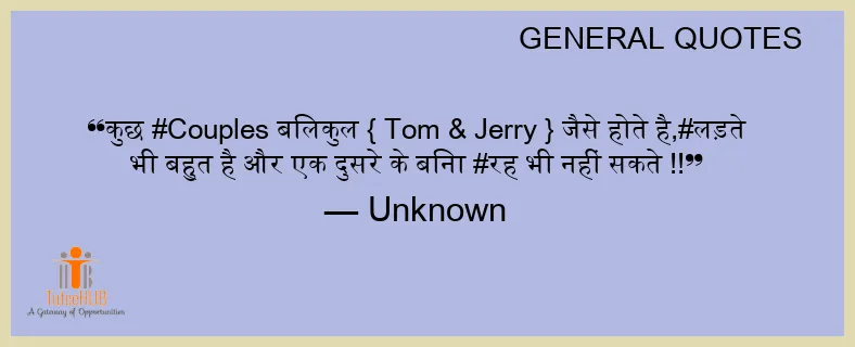कुछ #Couples बिलकुल { Tom & JERRY } जैसे होते है,#लड़ते भी बहुत है और एक दुसरे के बिना #रह भी नहीं सकते !!