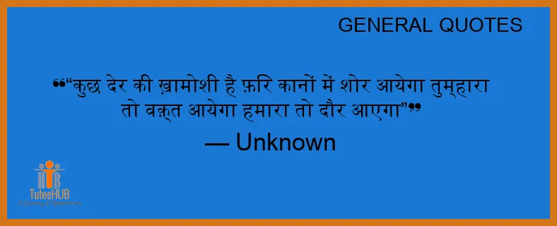 “कुछ देर की ख़ामोशी है फ़िर कानों में शोर आयेगा तुम्हारा तो वक़्त आयेगा हमारा तो दौर आएगा”