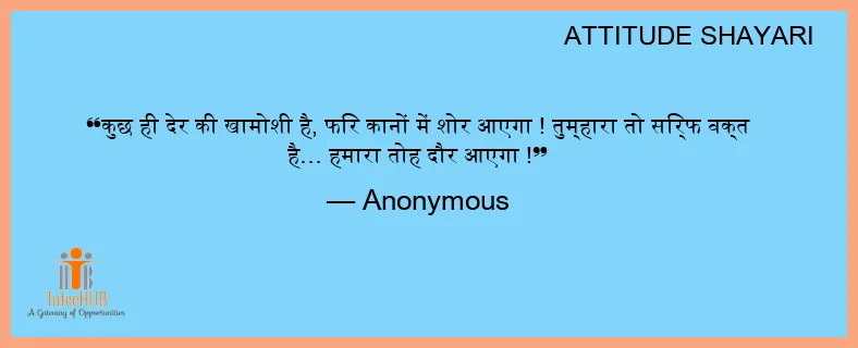 कुछ ही देर की खामोशी है, फिर कानों में शोर आएगा ! तुम्हारा तो सिर्फ वक्त है… हमारा तोह दौर आएगा !
