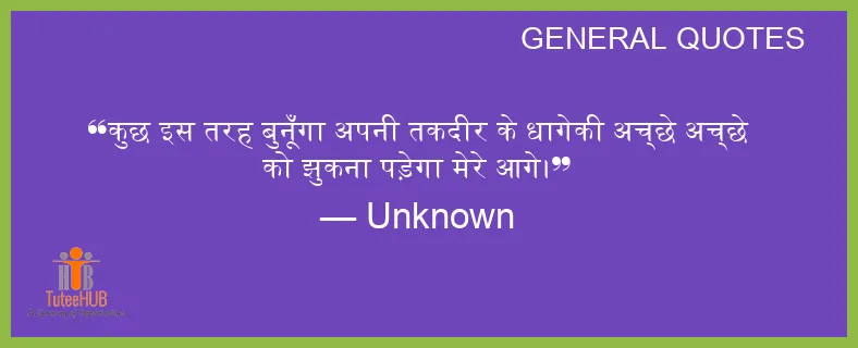 कुछ इस तरह बुनूँगा अपनी तकदीर के धागेकी अच्छे अच्छे को झुकना पड़ेगा मेरे आगे।