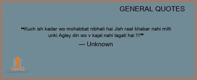 KUCH ish KADAR wo mohabbat nibhati HAI Jish raat KHABAR nahi milti unki Agley din wo V kajal nahi lagati hai !!!