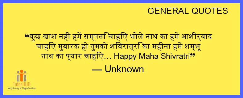 कुछ खाश नहीं हमें सम्पति चाहिए भोले नाथ का हमें आशीर्वाद चाहिए मुबारक हो तुमको शिवरात्रि का महीना हमें शम्भू नाथ का प्यार चाहिए… Happy Maha Shivratri