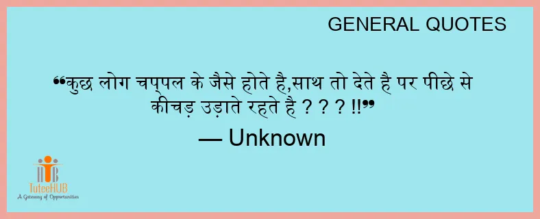 कुछ लोग चप्पल के जैसे होते है,साथ तो देते है पर पीछे से कीचड़ उड़ाते रहते है ? ? ? !!