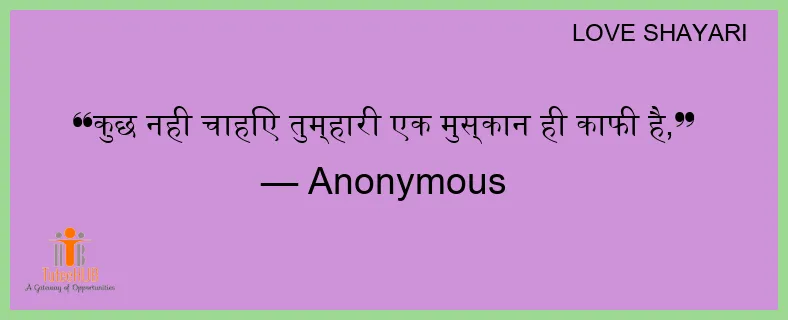 कुछ नही चाहिए तुम्हारी एक मुस्कान ही काफी है,