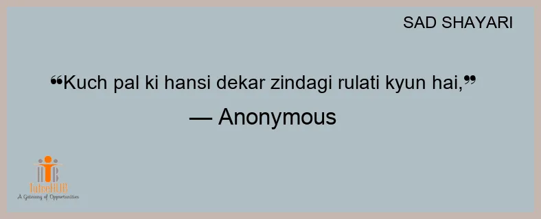 Kuch pal ki hansi dekar zindagi rulati kyun hai,
