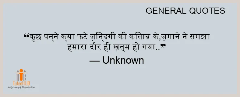कुछ पन्ने क्या फटे ज़िन्दगी की किताब के,ज़माने ने समझा हमारा दौर ही ख़त्म हो गया..