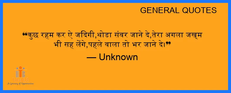 कुछ रहम कर ऐ जिंदगी,थोडा संवर जाने दे,तेरा अगला जख्म भी सह लेंगे,पहले वाला तो भर जाने दे।