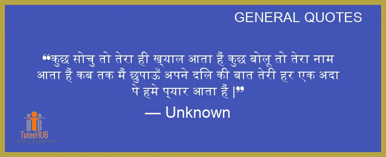 कुछ सोचु तो तेरा ही ख्याल आता हैं कुछ बोलू तो तेरा नाम आता हैं कब तक मैं छुपाऊँ अपने दिल की बात तेरी हर एक अदा पे हमे प्यार आता हैं |