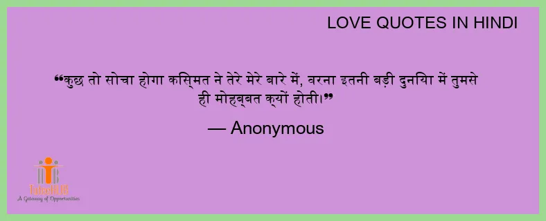कुछ तो सोचा होगा किस्मत ने तेरे मेरे बारे में, वरना इतनी बड़ी दुनिया में तुमसे ही मोहब्बत क्यों होती।