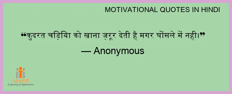 कुदरत चिड़िया को खाना ज़रूर देती है मगर घोंसले में नही।