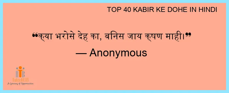 क्या भरोसे देह का, बिनस जाय क्षण माही।