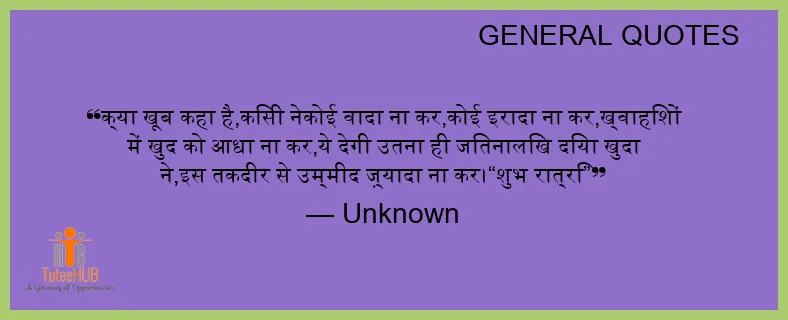 क्या खूब कहा है,किसी नेकोई वादा ना कर,कोई इरादा ना कर,ख्वाहिशों में खुद को आधा ना कर,ये देगी उतना ही जितनालिख दिया खुदा ने,इस तकदीर से उम्मीद ज़्यादा ना कर।“शुभ रात्रि”