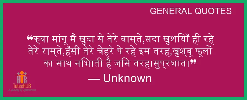क्या मांगू मैं खुदा से तेरे वास्ते,सदा ख़ुशियाँ ही रहे तेरे रास्ते,हँसी तेरे चेहरे पे रहे इस तरह,खुश्बू फूलों का साथ निभाती है जिस तरह।सुप्रभात।