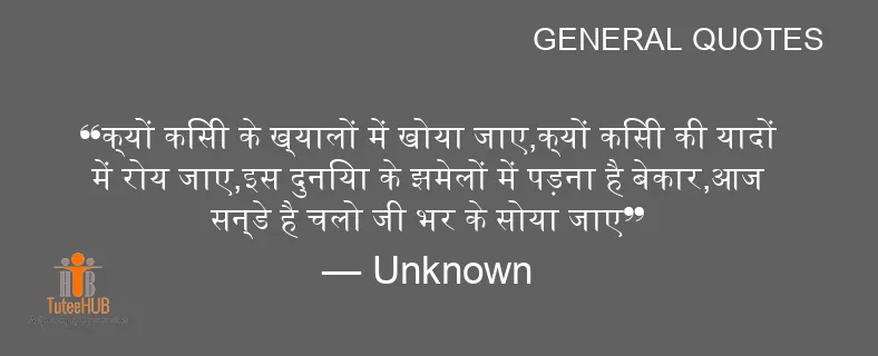 क्यों किसी के ख्यालों में खोया जाए,क्यों किसी की यादों में रोय जाए,इस दुनिया के झमेलों में पड़ना है बेकार,आज सन्डे है चलो जी भर के सोया जाए
