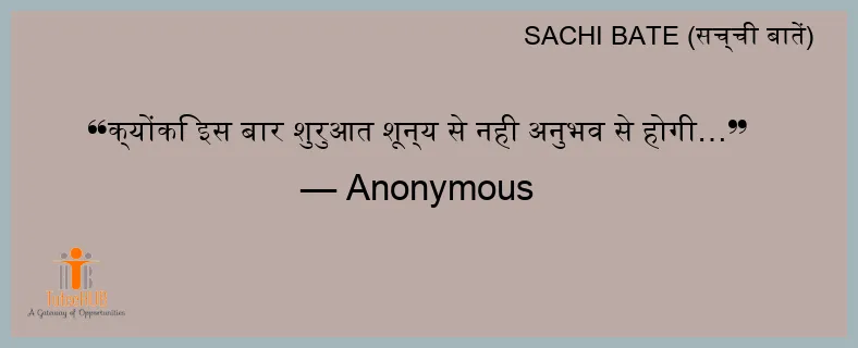 क्योंकि इस बार शुरुआत शून्य से नही अनुभव से होगी…