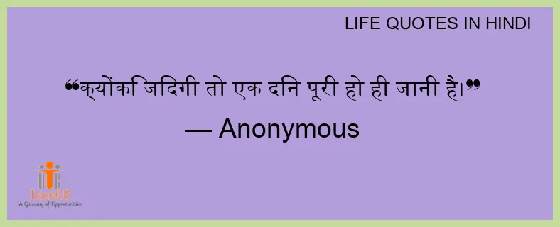 क्योंकि जिंदगी तो एक दिन पूरी हो ही जानी है।