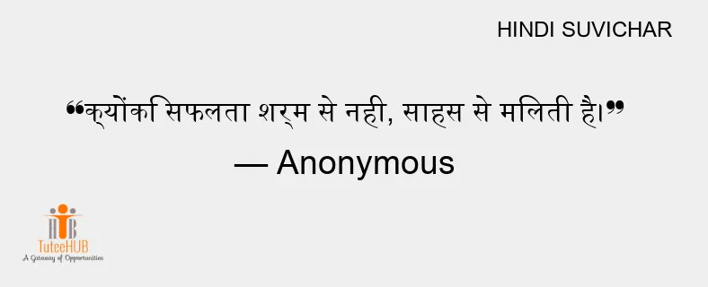 क्योंकि सफलता शर्म से नही, साहस से मिलती है।