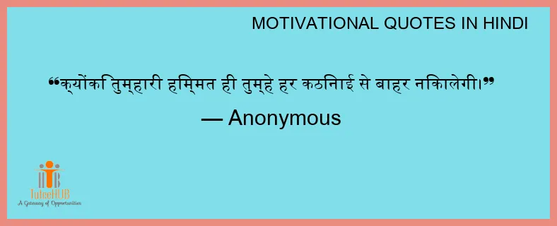 क्योंकि तुम्हारी हिम्मत ही तुम्हे हर कठिनाई से बाहर निकालेगी।