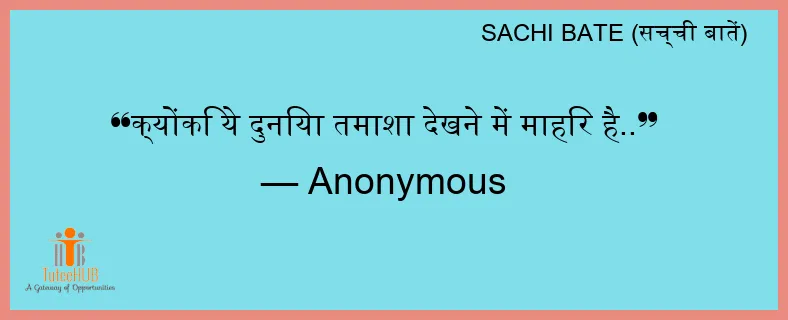 क्योंकि ये दुनिया तमाशा देखने में माहिर है..