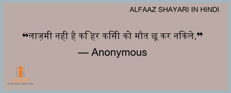 लाज़मी नही है कि हर किसी को मौत छू कर निकले,