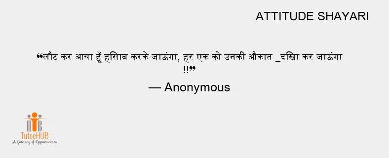 लौट कर आया हूँ हिसाब करके जाऊंगा, हर एक को उनकी औकात _दिखा कर जाऊंगा !!
