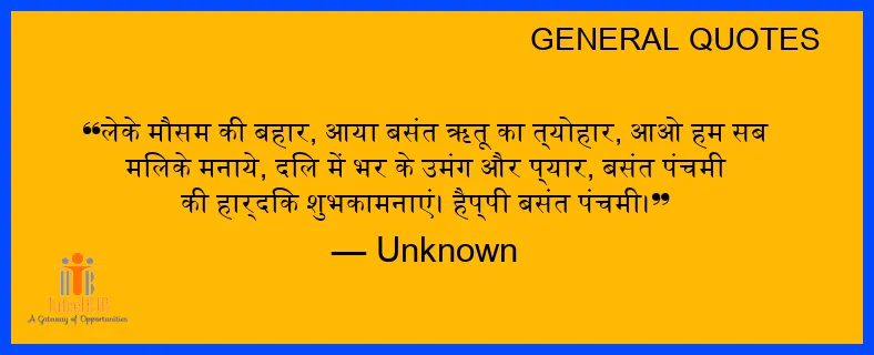 लेके मौसम की बहार, आया बसंत ऋतू का त्योहार, आओ हम सब मिलके मनाये, दिल में भर के उमंग और प्यार, बसंत पंचमी की हार्दिक शुभकामनाएं। हैप्पी बसंत पंचमी।