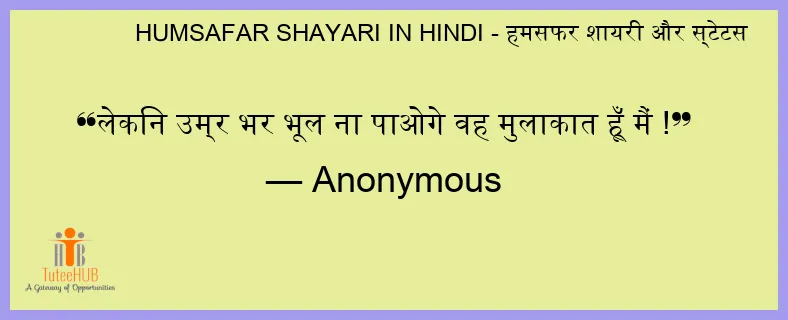 लेकिन उम्र भर भूल ना पाओगे वह मुलाकात हूँ मैं !